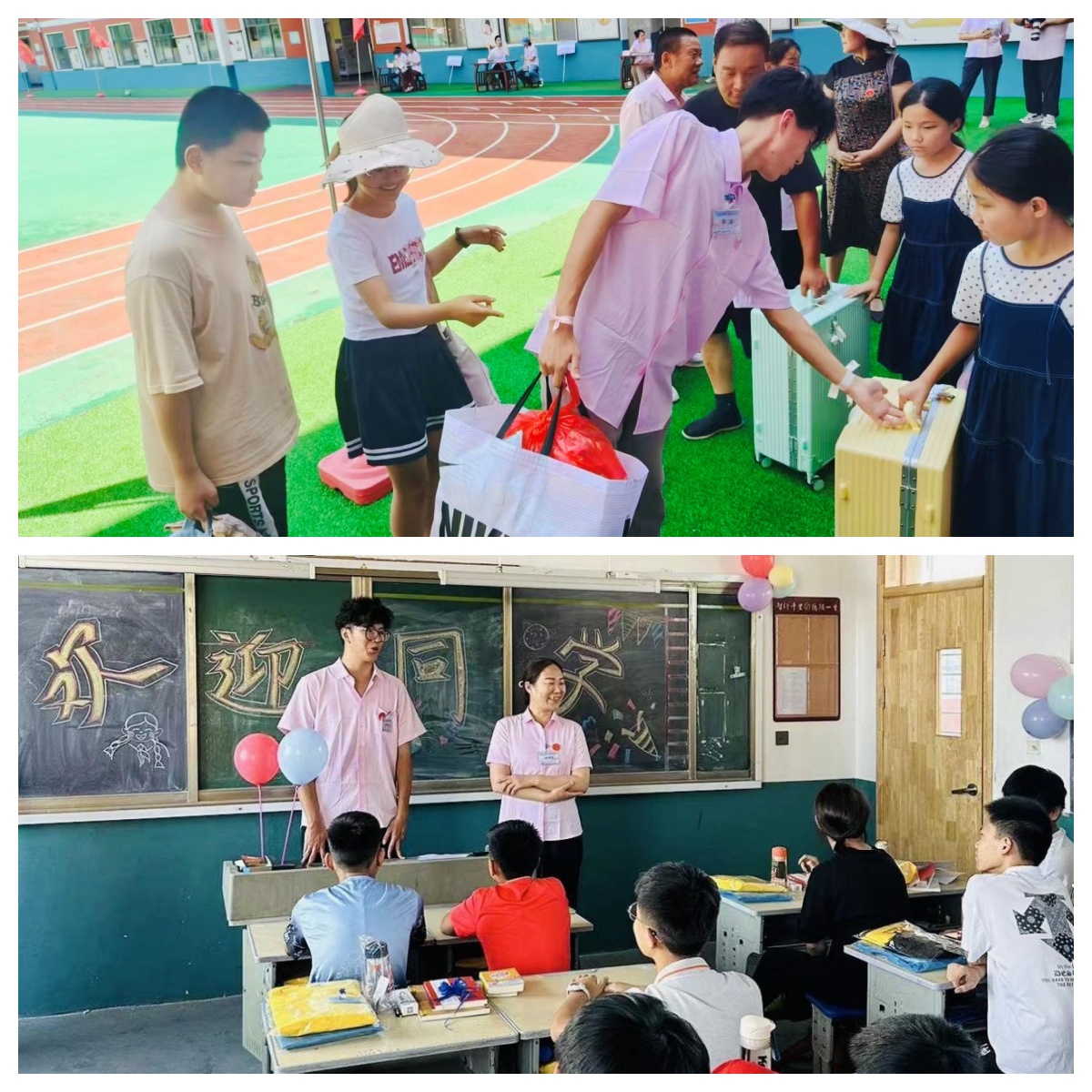 “童行不孤”志愿團(tuán)來到臨沂市河?xùn)|區(qū)智星實(shí)驗(yàn)學(xué)校,團(tuán)隊(duì)成員作為助教被分配到不同的班級(jí),協(xié)助老師們?yōu)樾氯霠I(yíng)的孤困兒童精心布置教室、幫助學(xué)生搬運(yùn)行李、引導(dǎo)入學(xué)及發(fā)放物品書籍。志愿者們懷著美好的祈愿,為著共同的目標(biāo),將關(guān)愛與希望付諸實(shí)踐,把溫暖傳遞到每個(gè)孩子心間。