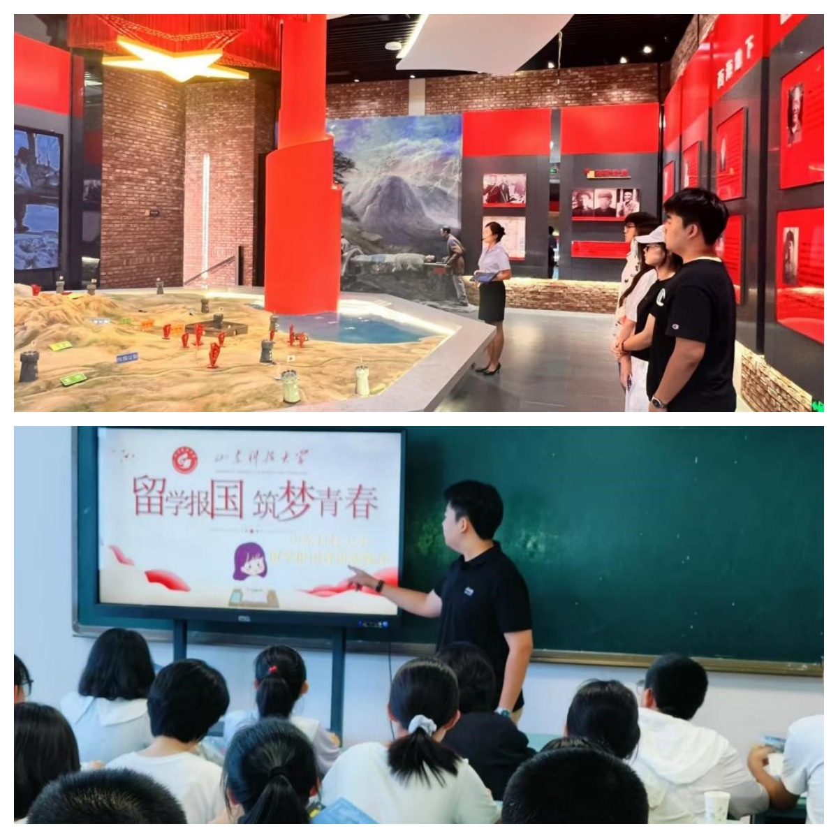 留學(xué)報(bào)國(guó)宣講實(shí)踐團(tuán)到萊州市西海地下醫(yī)院,見證抗戰(zhàn)時(shí)期萊州人民的智慧與勇氣,鼓舞了實(shí)踐團(tuán)成員的報(bào)國(guó)之志,激勵(lì)他們永葆奮斗精神,傳承紅色基因。團(tuán)隊(duì)成員走進(jìn)萊輝英華學(xué)校為萊州一中的高中生舉行了一場(chǎng)別開生面的“留學(xué)報(bào)國(guó),筑夢(mèng)青春”主題宣講,同時(shí)介紹了山東科技大學(xué)濟(jì)南校區(qū)的學(xué)科建設(shè)和專業(yè)優(yōu)勢(shì),鼓勵(lì)同學(xué)們樹立家國(guó)天下的情懷。