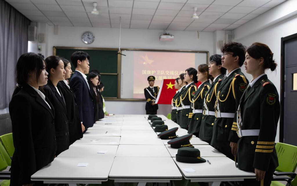 10月11日,濟(jì)南校區(qū)2024-2025學(xué)年國(guó)旗護(hù)衛(wèi)隊(duì)交接儀式暨團(tuán)支部換屆大會(huì)順利舉行。校區(qū)團(tuán)委社團(tuán)部指導(dǎo)教師劉夢(mèng)昕,上一屆國(guó)旗護(hù)衛(wèi)隊(duì)優(yōu)秀隊(duì)員代表、新一屆國(guó)旗護(hù)衛(wèi)隊(duì)全體成員參加活動(dòng)。