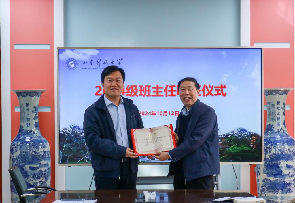 毛慶東宣讀了2024級班主任聘任文件并為新聘任的班主任頒發(fā)了聘書。他對各位老師擔(dān)任2024級班主任表示感謝。他強調(diào),班主任工作意義重大、使命光榮,必須牢記為黨育人、為國育才的初心使命。一要結(jié)合濟南校區(qū)實際情況,引導(dǎo)學(xué)生制定合理的學(xué)習(xí)目標(biāo)和生涯規(guī)劃,抓好學(xué)風(fēng)建設(shè),營造出國氛圍,進一步促進優(yōu)質(zhì)就業(yè);二要增強主動意識,充分發(fā)揮班主任參與班級管理的迫切性、必要性和重要性;三要多與學(xué)生聯(lián)系,主動接觸學(xué)生,了解學(xué)生想法,傾聽學(xué)生呼聲,及時發(fā)現(xiàn)并解決學(xué)生學(xué)習(xí)及生活中的問題;四要發(fā)揮班主任獨有作用和獨特優(yōu)勢,與輔導(dǎo)員協(xié)同育人,形成合力。