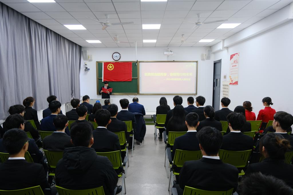 為進一步增強新團員的光榮感和責任感,增強團組織的生命力和凝聚力。11月28日,濟南校區(qū)在主樓308舉辦了“挺膺擔當勵青春,奮楫篤行向未來”—2024年新團員入團儀式。濟南校區(qū)黨委副書記兼學團工作部主任、學生黨總支書記毛慶東,校團委副書記兼濟南校區(qū)學團工作部副主任韓冰,大一大二大三年級組組長、新團員、青年代表參加了儀式。