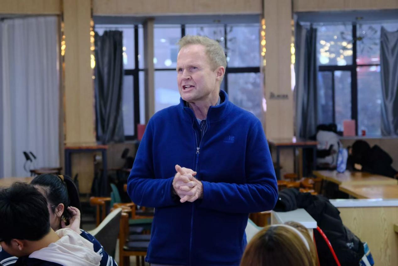 活動在《愛麗絲夢游仙境》中的下午茶片段中開場。外教 Edward 帶領(lǐng)大家一起追溯英式下午茶于 19 世紀在貴族社交圈的起源。他生動講述安娜公爵夫人如何巧妙創(chuàng)設(shè)這一傳統(tǒng)以化解午后時光的困乏與寂寥的歷史,并進一步闡述了隨著時代浪潮推進,下午茶文化在全球范圍內(nèi)的多元演變與交融歷程。Edward 的講解旁征博引、生動形象,引領(lǐng)同學(xué)們跨越時空界限,盡情領(lǐng)略下午茶文化背后深邃的歷史內(nèi)涵與獨特的社交價值,令大家如癡如醉、受益匪淺。
