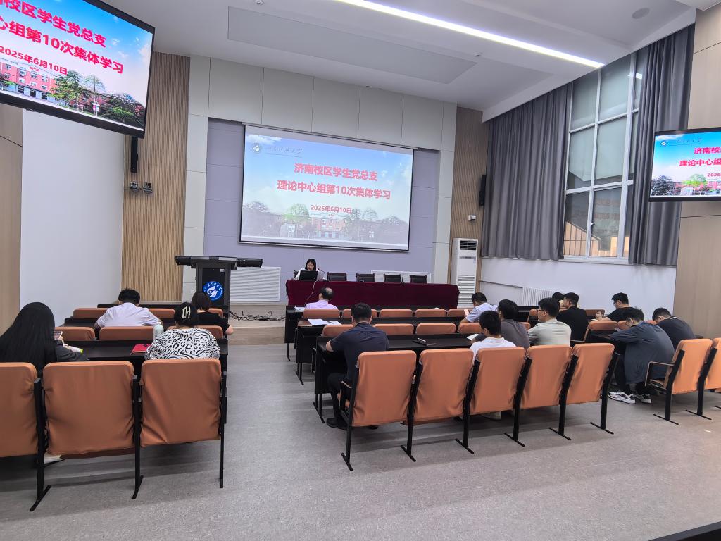 6月10日上午,濟(jì)南校區(qū)學(xué)生黨總支理論學(xué)習(xí)中心組在109報(bào)告廳開展2025年第十次集中學(xué)習(xí)。濟(jì)南校區(qū)黨委副書記兼學(xué)團(tuán)工作部主任、學(xué)生黨總支書記毛慶東主持學(xué)習(xí)活動(dòng)并作專題黨課輔導(dǎo)。