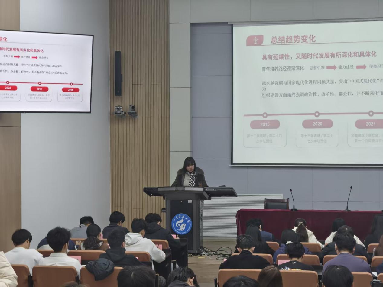 培訓(xùn)工作重視發(fā)揮優(yōu)秀青年的示范引領(lǐng)效能,精心組織開展了多場(chǎng)朋輩宣講活動(dòng)。11月20日,省“青馬工程”學(xué)員徐樂結(jié)合自身經(jīng)歷,深入分享了理論學(xué)習(xí)的收獲與基層實(shí)踐的體會(huì),生動(dòng)展現(xiàn)了理論與實(shí)踐緊密結(jié)合對(duì)于青年成長(zhǎng)的重要意義,為學(xué)員們指明了學(xué)以致用的方向。11月24日,校區(qū)團(tuán)委學(xué)生兼職副書記趙鵬彥以自身參與科創(chuàng)活動(dòng)與志愿服務(wù)的豐富經(jīng)歷為切入點(diǎn),著重強(qiáng)調(diào)青馬學(xué)員不僅要扎實(shí)學(xué)習(xí)理論知識(shí),更要將其運(yùn)用到實(shí)際行動(dòng)中,做到知行合一,以實(shí)際行動(dòng)踐行馬克思主義者的使命擔(dān)當(dāng)。11月25日,鄭思遠(yuǎn)等五位校第三次團(tuán)代會(huì)代表為青馬班學(xué)員作宣講,他們緊扣學(xué)校第三次團(tuán)代會(huì)精神,對(duì)大會(huì)各項(xiàng)部署進(jìn)行細(xì)致解讀,結(jié)合自身經(jīng)歷分享深刻感悟,并針對(duì)性地提出切實(shí)可行的行動(dòng)建議,成功凝聚起學(xué)員們落實(shí)會(huì)議精神的強(qiáng)大力量,充分激發(fā)了大家為學(xué)校發(fā)展添磚加瓦的熱情。