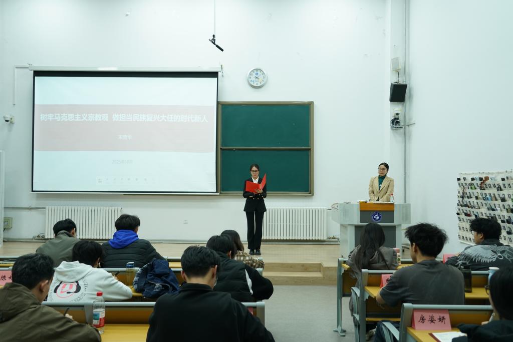 11月13日,濟(jì)南校區(qū)黨委委員、電氣信息系黨總支書記兼學(xué)團(tuán)工作部主任、學(xué)生黨總支書記毛慶東,以《對(duì)標(biāo)中國(guó)式現(xiàn)代化,做新時(shí)代青年馬克思主義者》為題作專題報(bào)告。他從理論根基、政治信仰、實(shí)干本色、使命擔(dān)當(dāng)四個(gè)方面,引導(dǎo)學(xué)員深化理論認(rèn)識(shí)、關(guān)注時(shí)事政治、推動(dòng)學(xué)用結(jié)合。11月14日,校組織部副處級(jí)組織員宋榮華作《高校宗教工作的形勢(shì)任務(wù)與應(yīng)對(duì)方法》專題報(bào)告,結(jié)合法律法規(guī)、黨團(tuán)員紀(jì)律及校園案例,闡釋教育與宗教相分離原則,教育引導(dǎo)學(xué)員樹牢馬克思主義宗教觀,增強(qiáng)辨別能力、自覺抵御和防范宗教向校園滲透。專家們圍繞馬克思主義理論、黨的最新政策方針等內(nèi)容展開深入淺出的講解,引導(dǎo)學(xué)員深刻領(lǐng)會(huì)馬克思主義的真理力量和實(shí)踐偉力,進(jìn)一步堅(jiān)定理想信念,提升政治素養(yǎng)。