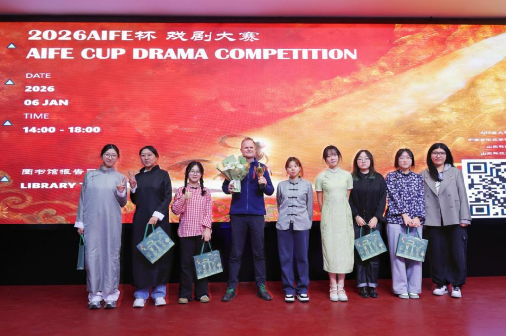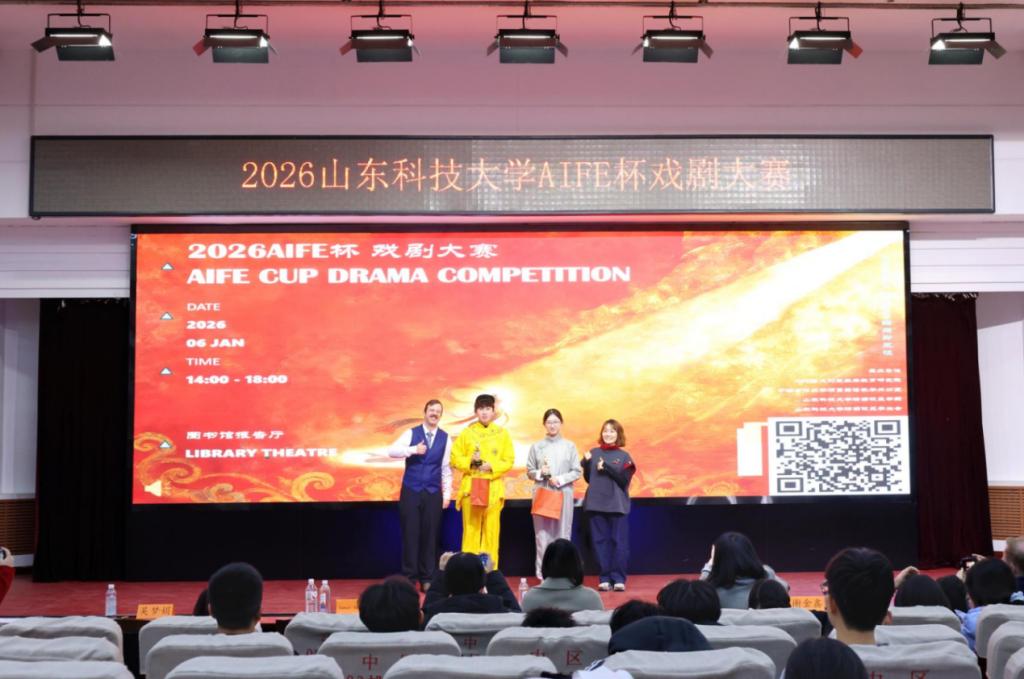 近日,山東科技大學(xué)濟(jì)南校區(qū)AIFE杯戲劇大賽在圖書館報(bào)告廳成功舉辦。本次大賽由AIFE山東科技大學(xué)項(xiàng)目分部主辦、濟(jì)南校區(qū)學(xué)生會承辦,吸引了來自6個不同專業(yè)的參賽隊(duì)伍同臺競技,呈現(xiàn)了一場融匯中西文化的戲劇盛宴。校區(qū)國際交流部楊朋、中澳項(xiàng)目主任王乙良、多名外籍教師及學(xué)生工作干部擔(dān)任評委,與現(xiàn)場觀眾共同見證了這場精彩展演。