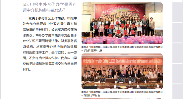為了進(jìn)一步加強(qiáng)對(duì)中外合作辦學(xué)政策的宣傳,使廣大校區(qū)師生更好地了解和掌握中外合作辦學(xué)信息,國(guó)際交流與合作辦公室陸續(xù)推出《中外合作辦學(xué)100問(wèn)》的學(xué)習(xí)活動(dòng),定期更新由中國(guó)教育國(guó)際交流協(xié)會(huì)編寫的手冊(cè)內(nèi)容。