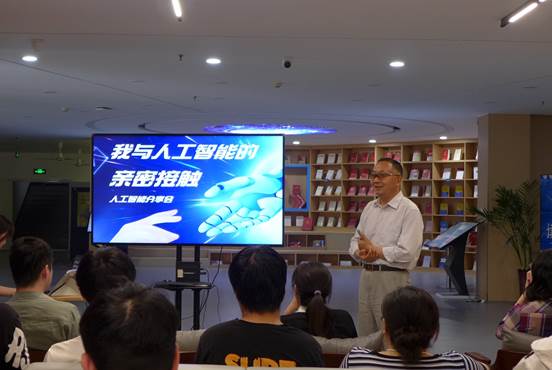 在科技飛速發(fā)展的今天,人工智能(AI)成為了焦點話題,同時人工智能已經(jīng)成為我們生活中不可或缺的一部分。為了更好地了解人工智能的深層含義、前沿發(fā)展和日常應用,5月21日下午4點10分,作為世界讀書日系列活動策劃內容之一 “我與人工智能的親密接觸”為主題的讀書分享會,在圖書館二樓休閑閱讀區(qū)舉行,吸引了眾多對人工智能感興趣的老師和學生前來參加。
