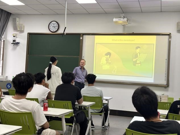 活動(dòng)伊始,Edward和David為大家介紹了文化與刻板印象的基本概念,并分別展示作為英國(guó)人和美國(guó)人經(jīng)常被大家調(diào)侃的刻板印象場(chǎng)景, 圖文并茂列舉實(shí)例來幫助學(xué)生理解不同文化中的常見誤解和刻板印象。