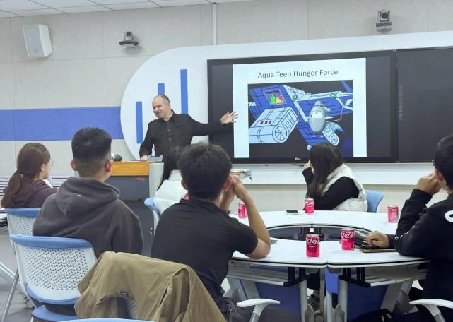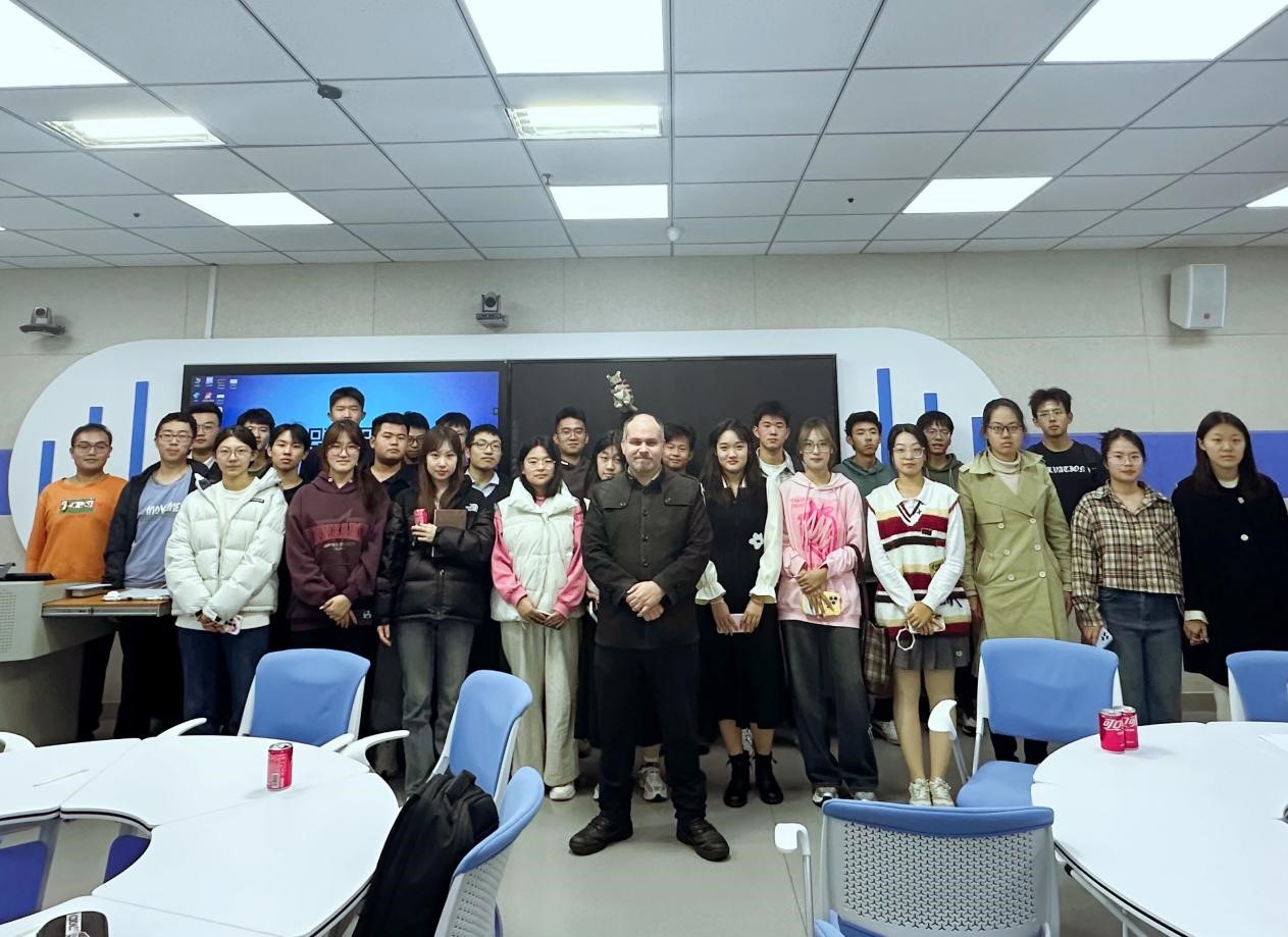 2024年10月29日,第五期英語角活動再次拉開帷幕,由外教Matthew主講,以“喜劇與幽默感”(Comedy and Sense of Humor )為主題展開了一場圍繞美式幽默和美國文化的活動。Matthew通過展示國外流行的情景喜劇片段,帶領(lǐng)學(xué)生感受美式幽默的獨(dú)特魅力。他不僅介紹了美劇的語言風(fēng)格,還深入講解了美式幽默背后的文化背景和生活元素,幫助學(xué)生們理解這種幽默感的來源和表現(xiàn)方式。