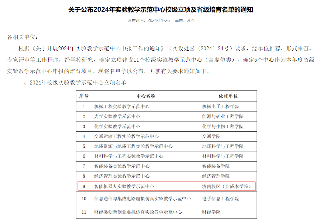 近日,學校公布了2024年實驗教學示范中心校級立項及省級培育名單,濟南校區(qū)(斯威本學院)智能機器人實驗教學示范中心成功獲批2024年校級實驗教學示范中心,這是學院在實驗教學領域取得的一項重要成果。