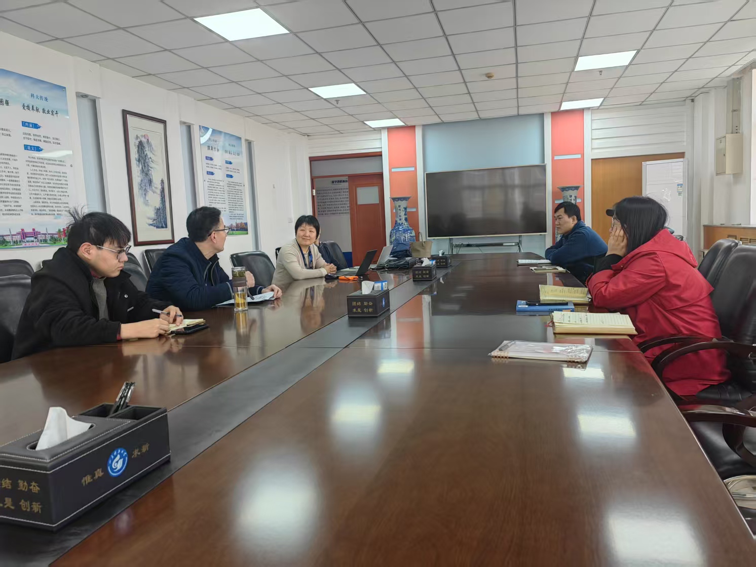 孫正鳳對楊彬一行的到來表示歡迎,對創(chuàng)新創(chuàng)業(yè)學(xué)院一直以來給予的關(guān)注和支持表示感謝,介紹了濟南校區(qū)大學(xué)生創(chuàng)新創(chuàng)業(yè)計劃項目及創(chuàng)新創(chuàng)業(yè)課程相關(guān)情況。楊彬詳細介紹了大學(xué)生創(chuàng)新創(chuàng)業(yè)計劃項目相關(guān)政策及創(chuàng)新創(chuàng)業(yè)課程建設(shè)情況,認真聽取了老師的意見和建議,并回答了老師們的各種問題。