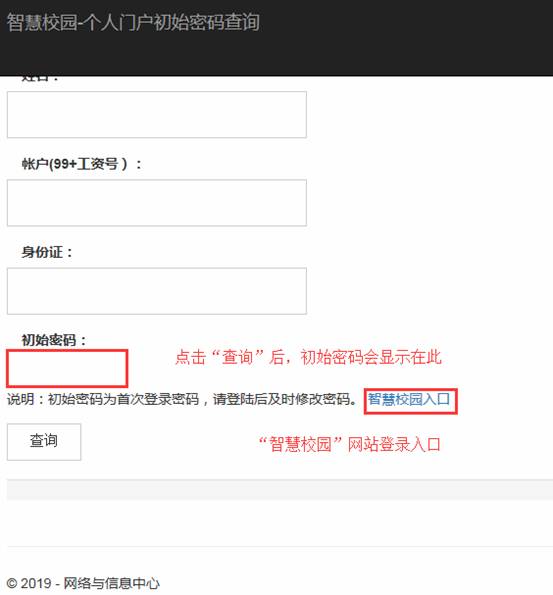 注意:智慧校園的初始密碼修改之后立即無效,請大家務(wù)必保存好個人的密碼。如查詢初始密碼時顯示用戶名不存在,請仔細(xì)核對輸入信息或與我們聯(lián)系,電話:58863001。
