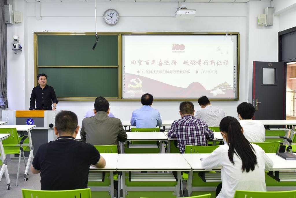 930日,濟(jì)南校區(qū)黨委副書(shū)記賈長(zhǎng)響以“回望百年奮進(jìn)路 砥礪前行新征程”為題為分管部門(mén)黨政辦公室、財(cái)務(wù)部、資產(chǎn)管理辦公室干部職工作黨史學(xué)習(xí)教育專(zhuān)題宣講。