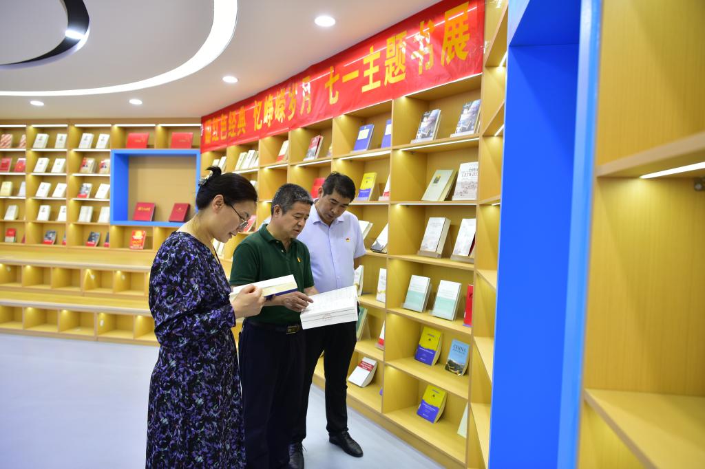 在圖書館紅色教育基地,中心組成員沉浸式閱讀中外文紅色經(jīng)典書目,觀看紅色教育影視資料,感受百年黨史的波瀾壯闊和初心使命的風(fēng)雨如磐。