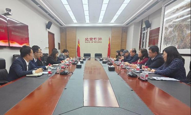 北京銀行濟(jì)南分行營(yíng)業(yè)部行長(zhǎng)助理張萌對(duì)支部黨員表示熱烈歡迎,零售銀行部副總經(jīng)理孫寶霞從銀行整體情況、黨建引領(lǐng)業(yè)務(wù)、服務(wù)大眾舉措、文化金融和教育金融工作建設(shè)等方面進(jìn)行介紹。校區(qū)管委副主任施宙簡(jiǎn)要介紹了濟(jì)南校區(qū)和金融系的發(fā)展歷程、專業(yè)特色及取得成績(jī),金融系主任湯巍著重介紹了金融學(xué)專業(yè)教學(xué)科研工作,并就雙方業(yè)務(wù)合作進(jìn)行深入交流。與會(huì)人員就充分發(fā)揮雙方優(yōu)勢(shì)、深化產(chǎn)教研用融合、學(xué)生實(shí)習(xí)實(shí)訓(xùn)等方面進(jìn)行了深入的交流探討。(圖/文:牛曉東)