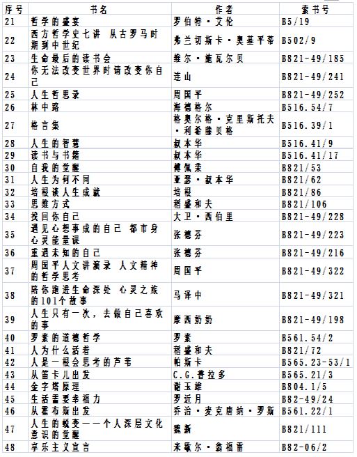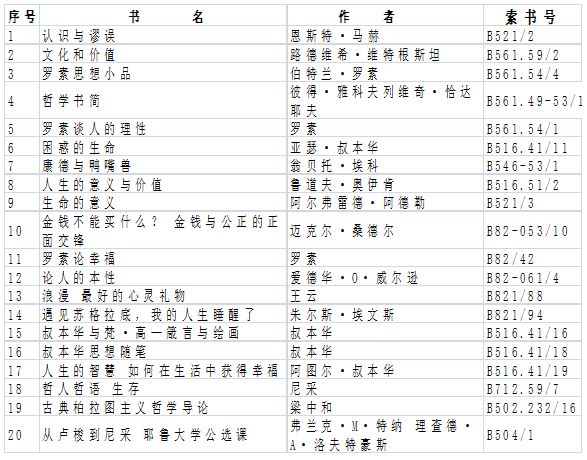 這里有海德格爾、羅素、叔本華、馮友蘭、胡適......,書單如下: