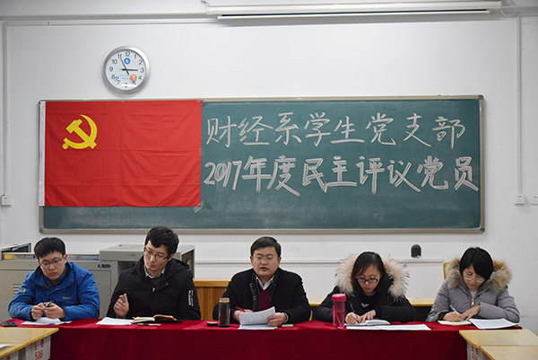 根據(jù)學(xué)校黨委要求和校區(qū)黨委、財經(jīng)系黨總支的部署,1月12日下午與1月15日下午,財經(jīng)系學(xué)生黨支部分別于1-507與1-508召開了組織生活會與民主評議黨員大會。財經(jīng)系黨總支副書記胡寶征、財經(jīng)系團(tuán)總支書記袁玉磊出席并指導(dǎo)會議,財經(jīng)系學(xué)生黨支部全體黨員參加,齊斯文主持會議。
