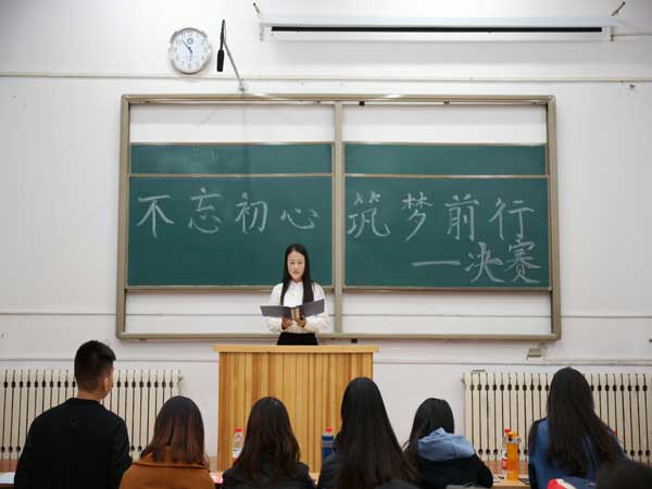 財經(jīng)系在廣大學(xué)生中開展了“不忘初心,筑夢前行”主題演講比賽、“激辯青春正能量”校園辯論賽、“十九大知多少”線上知識競賽、“學(xué)習(xí)十九大精神”主題團(tuán)日活動、“深入學(xué)習(xí)十九大精神,彰顯大學(xué)生宿舍風(fēng)采”宿舍logo宣傳板設(shè)計等一系列活動,以不同的形式,全方位、多層次、多角度學(xué)習(xí)宣傳十九大,讓學(xué)生深刻學(xué)習(xí)領(lǐng)悟十九大精神。演講比賽與辯論賽圍繞勤學(xué)、修德、明辨、篤實,深入貫徹十九大精神,展現(xiàn)參賽學(xué)生的演講辯論能力與新時代新青年的風(fēng)采。在“十九大知多少”知識競賽活動中,學(xué)生通過線上答題的方式進(jìn)入財經(jīng)系微信公眾平臺,在限定時間內(nèi)就“十九大主題”、“十九大怎樣重新定義社會主要矛盾?”、“檢驗政黨、政權(quán)性質(zhì)的試金石是什么”等基礎(chǔ)知識展開作答,促使學(xué)生把握十九大報告的精髓要義。以團(tuán)支部為單位開展的“學(xué)習(xí)十九大精神”主題團(tuán)日活動,通過學(xué)生干部宣講、觀看十九大會議視頻、共同討論等形式,根據(jù)學(xué)生自身的經(jīng)歷,選擇不同的切入點講述對十九大精神的理解與感悟。宿舍logo宣傳板設(shè)計則以宿舍文化建設(shè)為載體促進(jìn)學(xué)生學(xué)習(xí)思考、追隨時代,彰顯宿舍文化,展現(xiàn)新時代大學(xué)生的精神風(fēng)采。