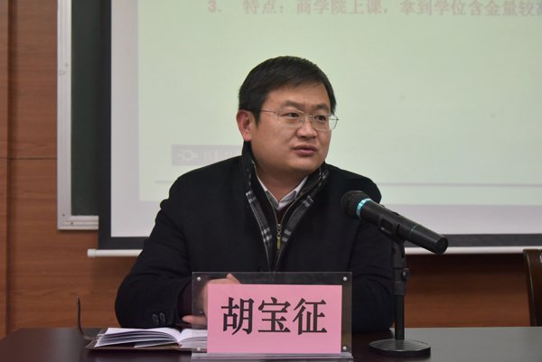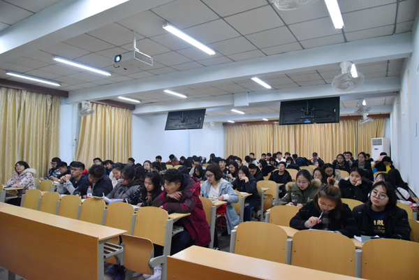 胡寶征首先為同學們講解了此次動員會的目的,鼓勵大家積極參加國貿(mào)專業(yè)的中外合作項目,提高自身的競爭力。段治平為同學們詳細介紹了新“3+1+1”、“2+2”中外合作辦學新模式,并指出,教改班與合作項目對接,在教學過程中更加強調(diào)英語聽說能力的培養(yǎng),更具有目標性和導向性,為留學做好充分準備。隨后,劉忠誠與袁清文為同學們講解了美國克拉克大學的現(xiàn)狀與在美國的排名情況,介紹了合作辦學項目的相關情況。同學們積極提問,踴躍互動交流,全場氣氛熱烈。