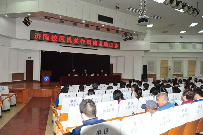 3月21日下午,濟(jì)南校區(qū)在圖書館報(bào)告廳召開機(jī)關(guān)作風(fēng)建設(shè)動員會議。校黨委副書記兼濟(jì)南校區(qū)黨委書記、管委會主任尹華出席會議并講話。機(jī)關(guān)、離退休工作辦公室、后勤管理處全體教職工,兩系一部科級以上干部參加了動員會。會議由校區(qū)黨委常務(wù)副書記高永軍主持。