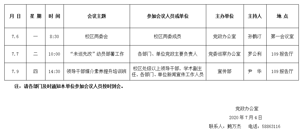 濟(jì)南校區(qū)第二十二周會(huì)議安排