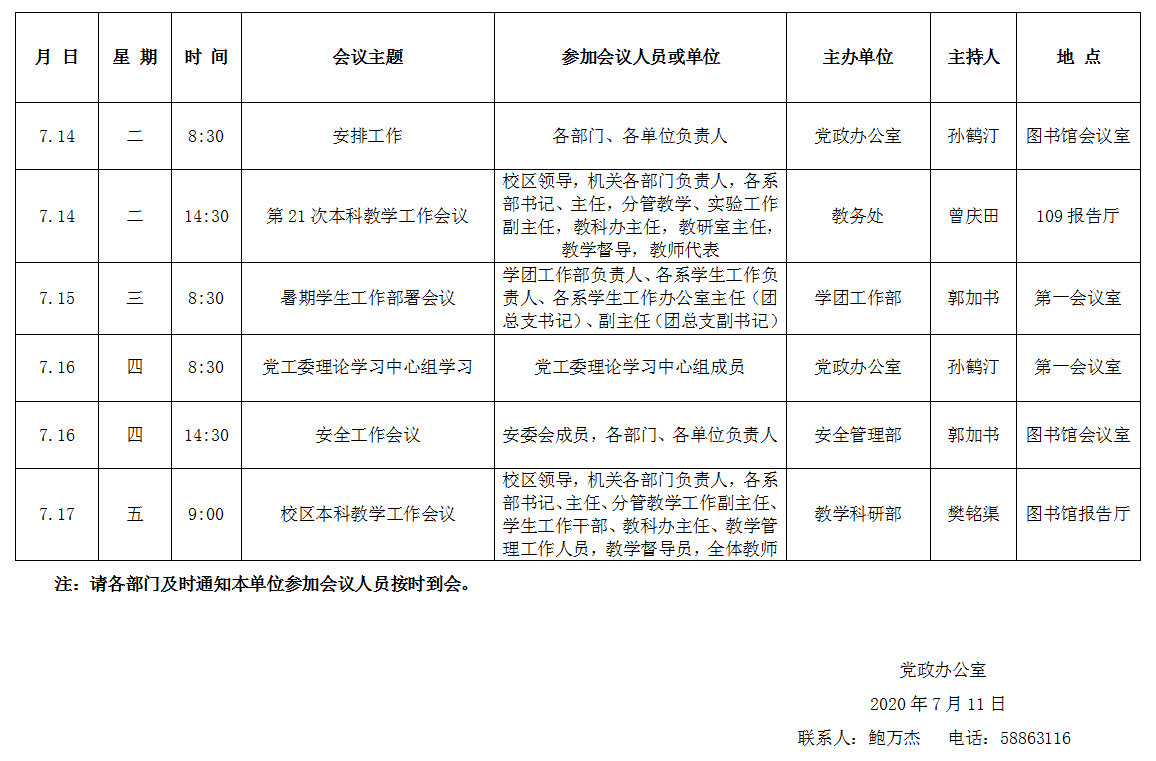 濟南校區(qū)第二十三周會議安排