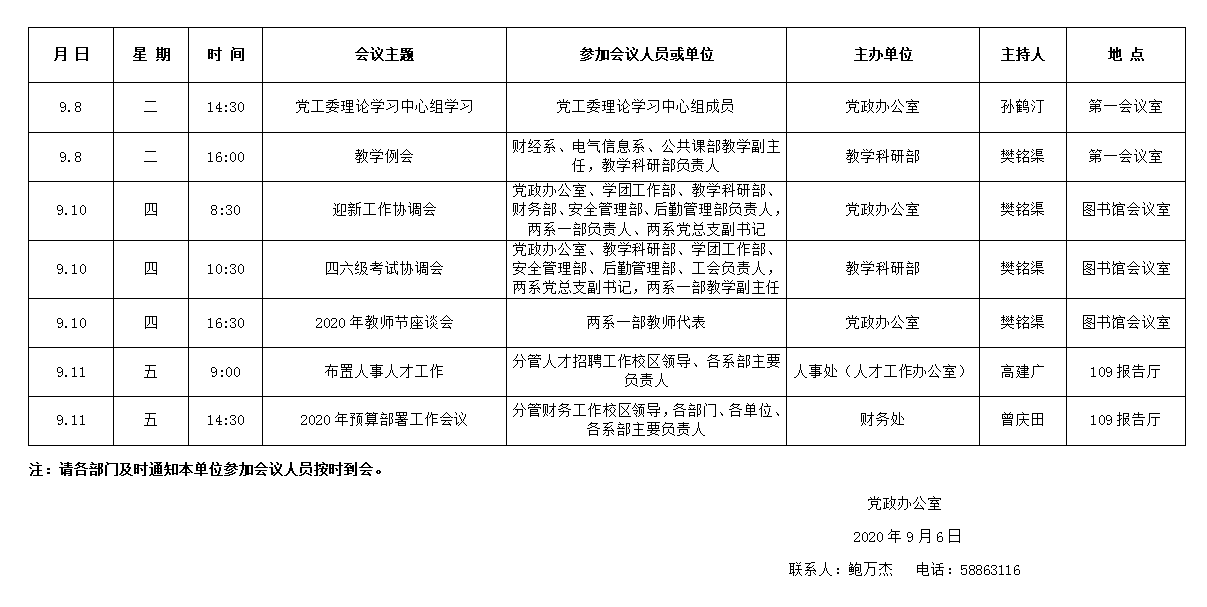 濟(jì)南校區(qū)第二周會(huì)議安排