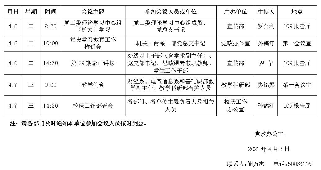 濟(jì)南校區(qū)第六周會(huì)議安排