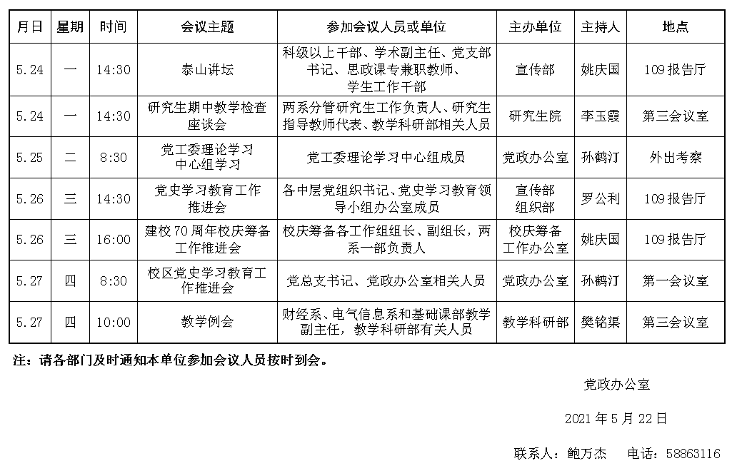 濟(jì)南校區(qū)第十三周會議安排