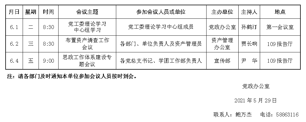 濟(jì)南校區(qū)第十四周會(huì)議安排