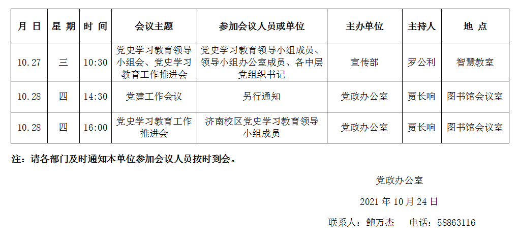 濟(jì)南校區(qū)第九周會議安排