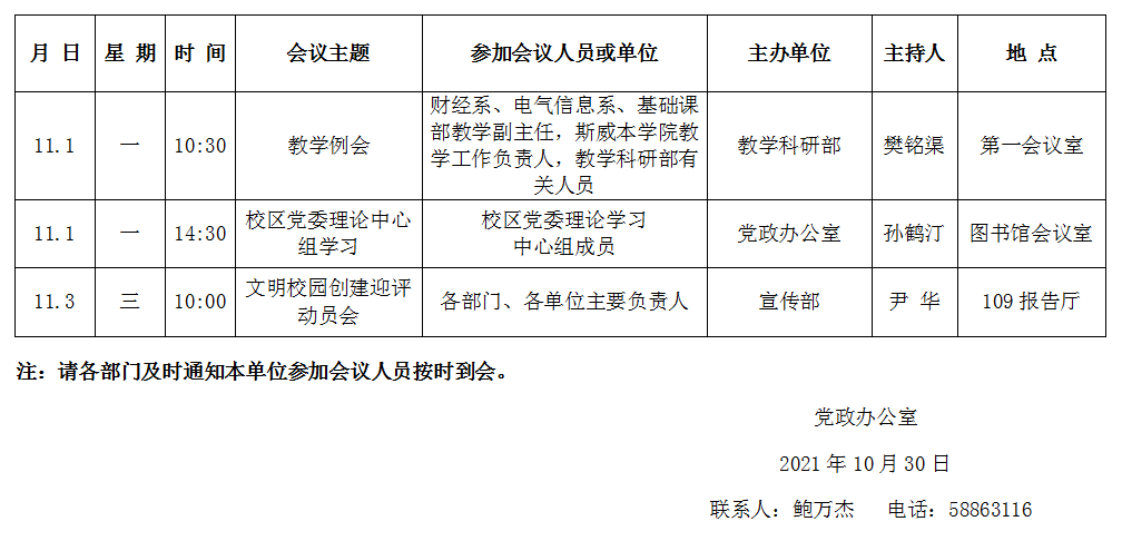 濟(jì)南校區(qū)第十周會(huì)議安排