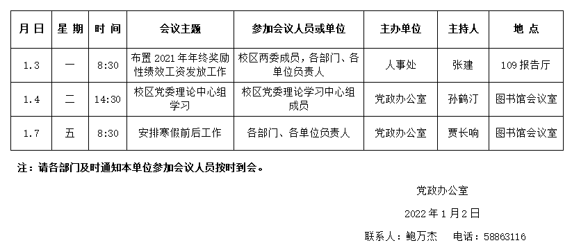濟(jì)南校區(qū)第十九周會(huì)議安排