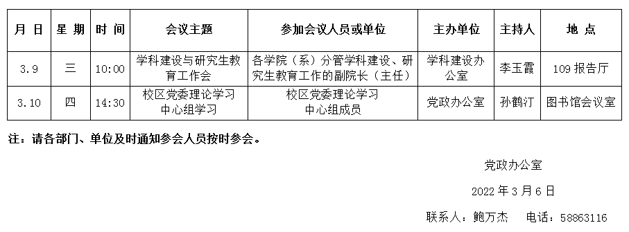 濟南校區(qū)第二周會議安排