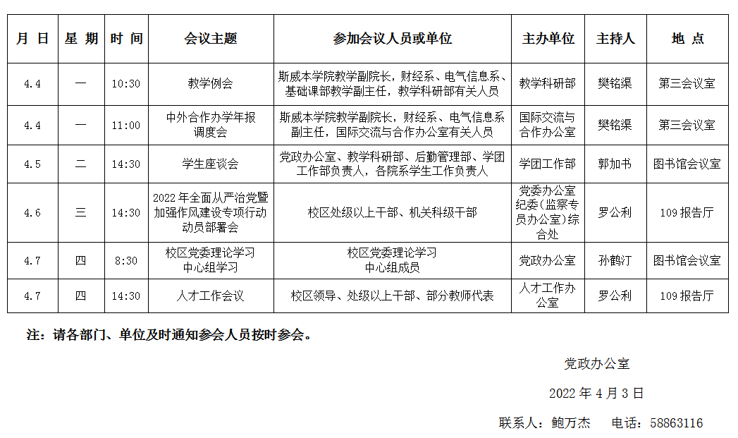 濟(jì)南校區(qū)第六周會(huì)議安排