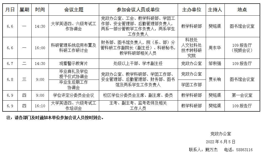 濟(jì)南校區(qū)第十五周會(huì)議安排