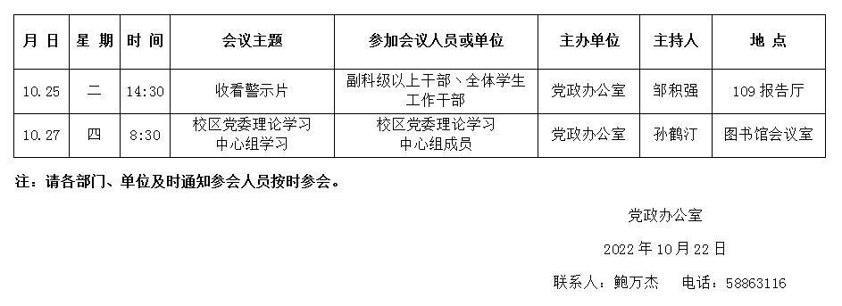濟南校區(qū)第十周會議安排