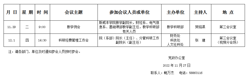 濟南校區(qū)第十四周會議安排