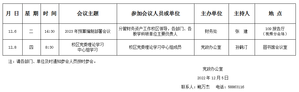 濟南校區(qū)第十四周會議安排