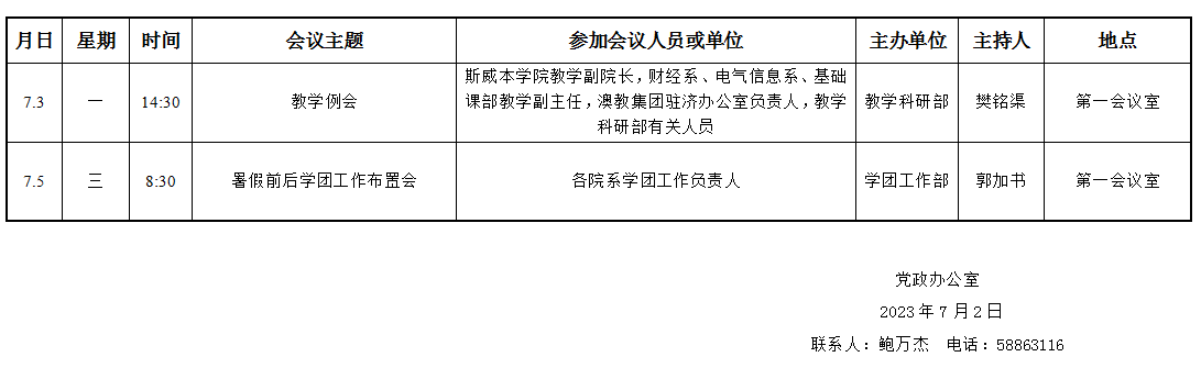 濟(jì)南校區(qū)第二十周會(huì)議安排