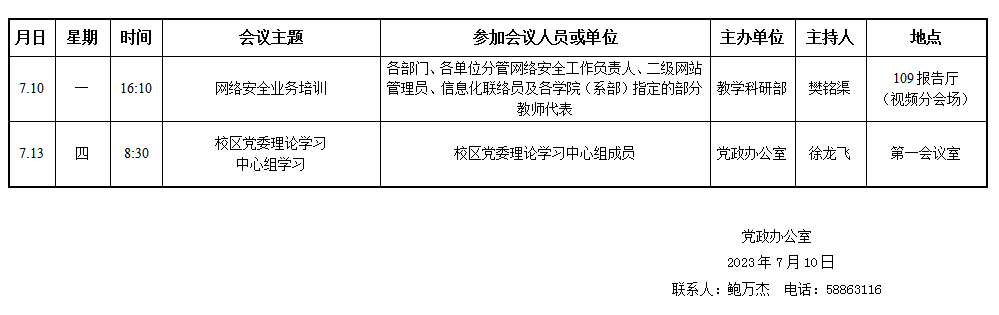 濟(jì)南校區(qū)第二十一周會(huì)議安排