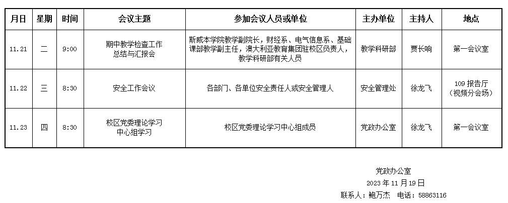 濟(jì)南校區(qū)第十三周會(huì)議安排