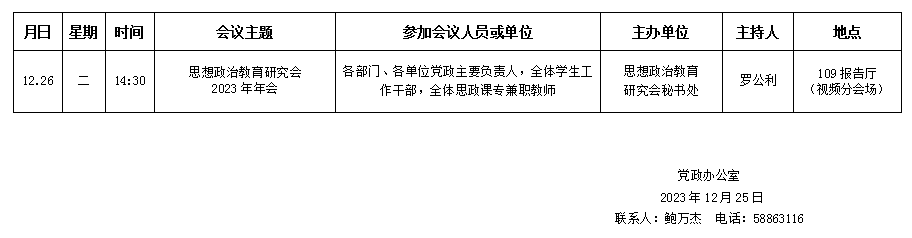 濟(jì)南校區(qū)第十八周會(huì)議安排