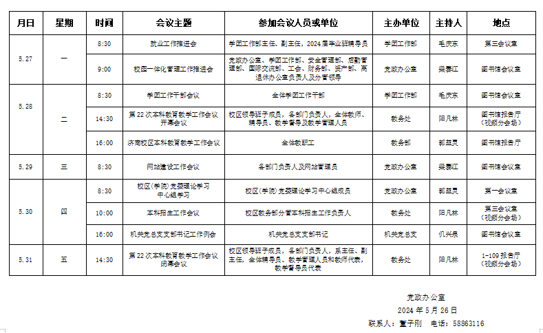 濟(jì)南校區(qū)(斯威本學(xué)院)第十四周會(huì)議安排