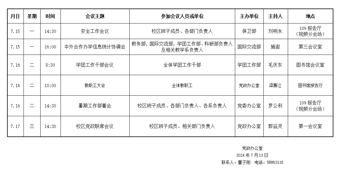 濟(jì)南校區(qū)(斯威本學(xué)院)第二十一周會(huì)議安排