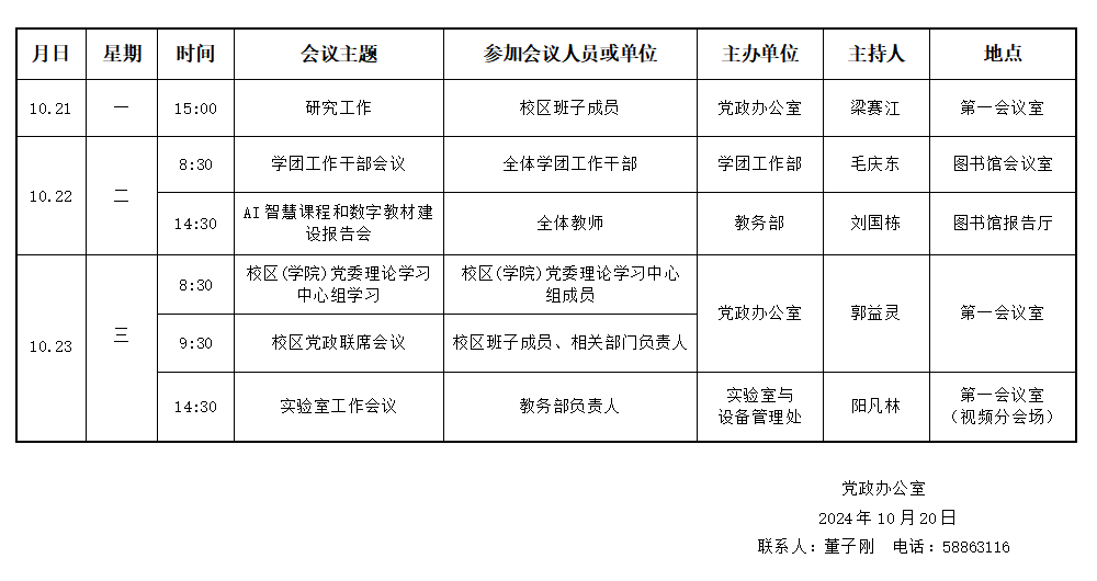 濟南校區(qū)(斯威本學院)第八周會議安排