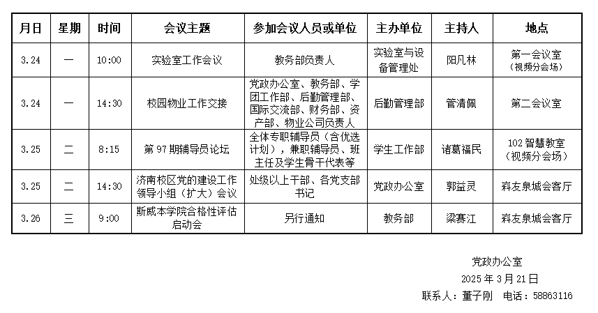 濟南校區(qū)(斯威本學院)第四周會議安排
