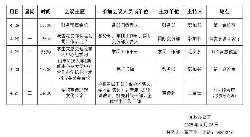 濟(jì)南校區(qū)(斯威本學(xué)院)第十周會議安排
