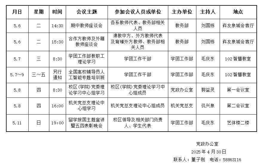 濟南校區(qū)(斯威本學院)第十一周會議安排